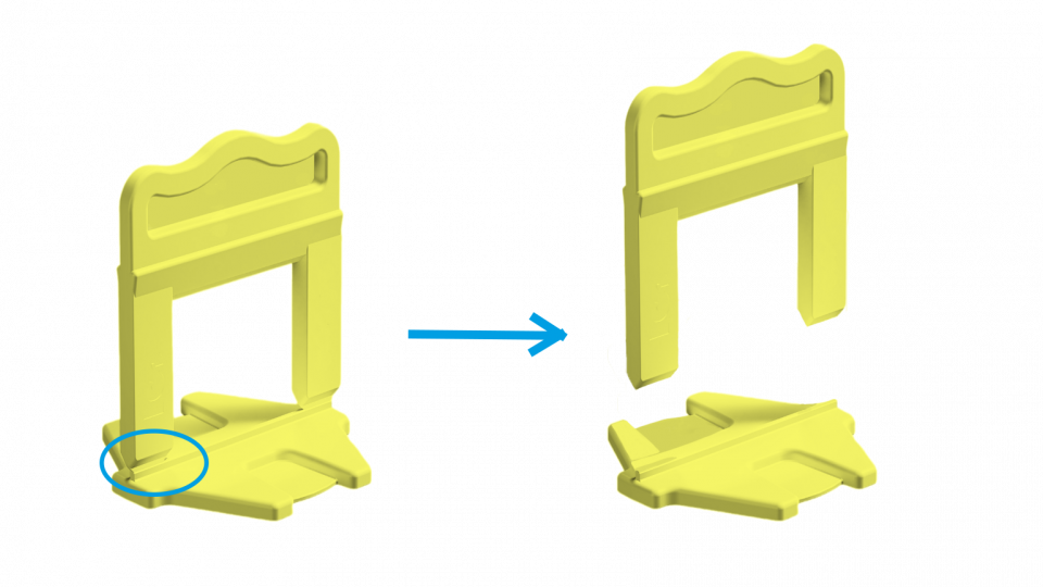 Om de superieure breekbaarheid van de clips te illustreren, tonen we een zij-aanzicht van de tekening CRIX-clips XL die netjes afbreken op de juiste plaats. Dit zorgt ervoor dat er geen restjes achterblijven in de voegen