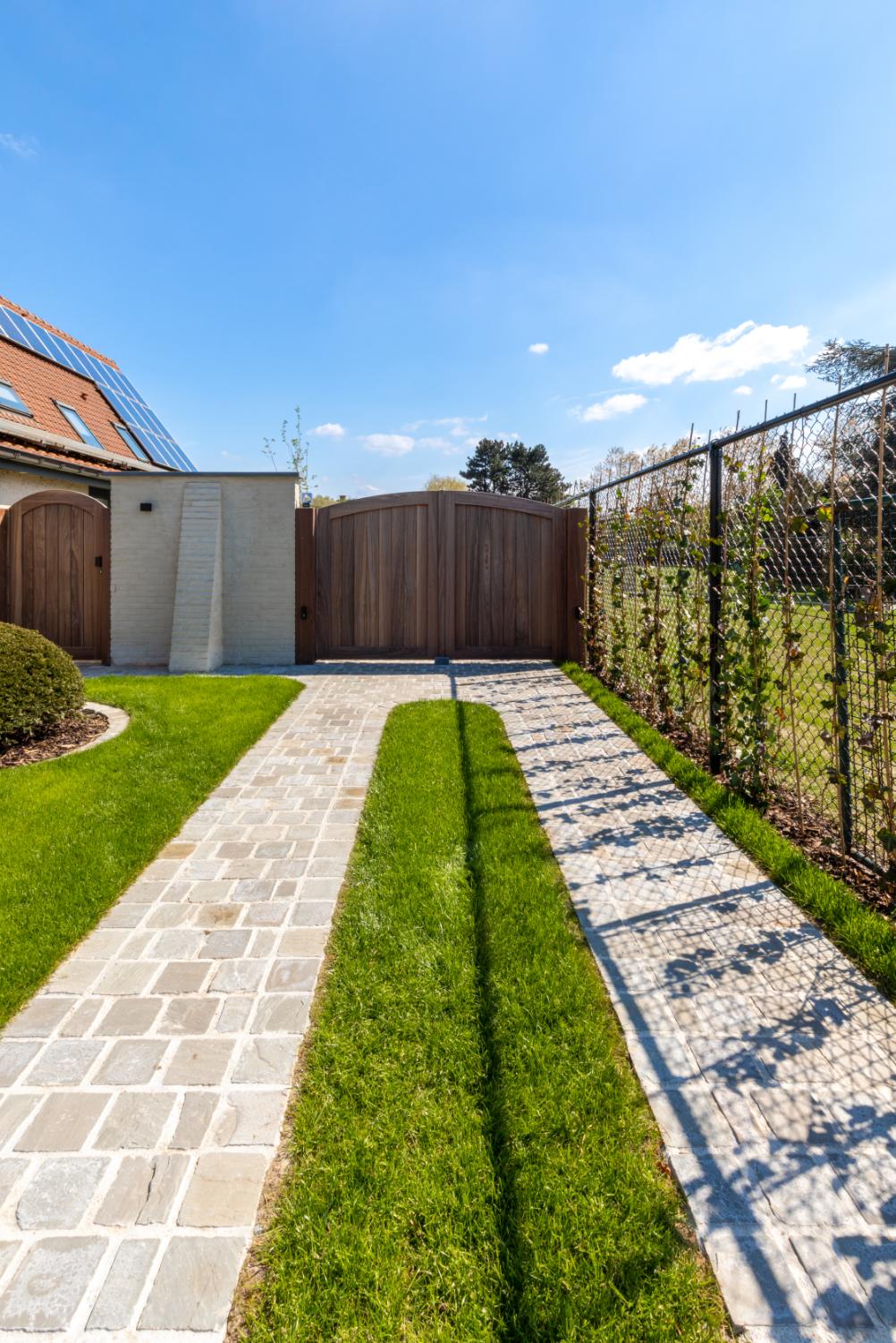 Om het bijgebouw met de bestaande landelijke woning te linken, koos Jörn voor een bakstenen gebouw dat eveneens werd gekaleid en voor de integratie van een tuinmuur als fysieke ondersteuning. De muur rond de poort opzij is ook nieuw en geeft het geheel extra uitstraling. “Ik hou van tuinmuren, ze lossen vaak problemen op en zorgen voor beleving. In dit specifieke geval creëren ze eenheid in het geheel. Ik gaf ook een aanzet voor aanpassingen aan de bestaande woning om beide nog meer tot hun recht te laten komen, onder meer via grotere raampartijen. Ze zijn geneigd mij daarin te volgen, dat geeft veel voldoening. Dergelijke totaalprojecten doe ik heel graag, zeker voor klanten die je zoveel vertrouwen geven.”